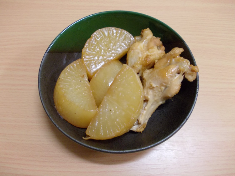 ●大根を入れて蓋をして20分くらい竹串(爪楊枝)がスッと入るくらい柔らかくなるまで煮る。(このときに、鍋の中で大根が鶏肉の下になるように並べると良いようです。)