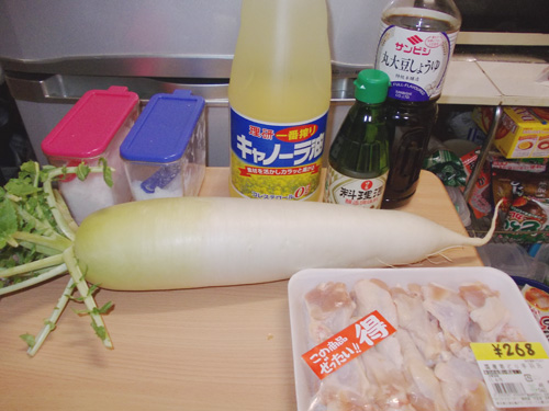 手羽元又は手羽先(今回は1パック10本)・大根(3分の2〜4分の3本)・サラダオイル(大匙2)